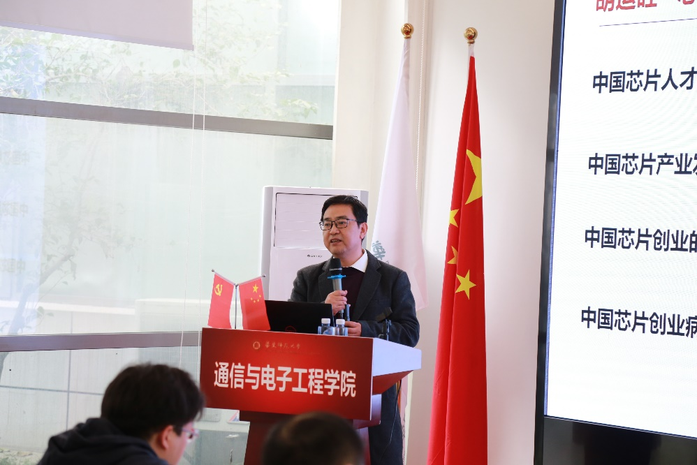 2023年12月13日,飞翔论坛第二期第十二讲《中国芯片产业的未来与我们的职业选择》在信息楼魔方厅举行。此次论坛邀请华东师范大学心理学专业的杰出校友胡运旺作为主讲嘉宾,通信与电子工程学院党委副书记、副院长夏冰主持论坛。
